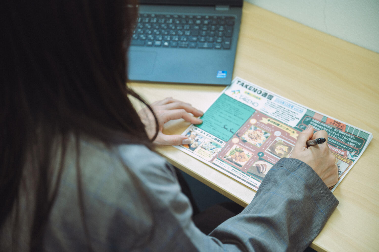 もう一つは、社内報「タケノ通信」の発行です。社長の活動報告や新店オープン情報、目標達成に向けたメッセージなどを毎月1回、自分の手で編集して発行しています。各店舗の店長やマネージャーから情報を集め、現場の熱い思いを全スタッフに届けるこの仕事に大きなやりがいを感じています。